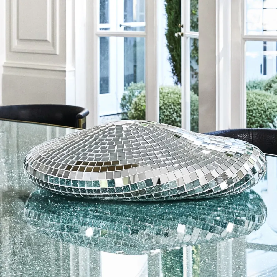 A limited edition hand-sculpted glass mirror objet d’art inspired by Los Angeles and created exclusively for Kelly Wearstler by the Dutch art collective Rotganzen. Part of the coveted Quelle Fête collector’s series of sculptures playfully reminiscent of glamorous nights laden with melancholic nostalgia for times past, each of the 10 pieces is editioned and signed by Rotganzen. Accompanied by a certificate and holographic seal of ensured authenticity.