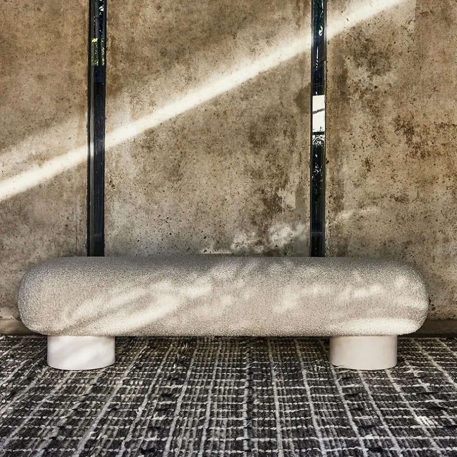 With its monolithic massing and sculptural play on materiality, the Colina Bench is an approachable iteration of modern organic design. This bench is made by a local LA artisan from hand-formed white resin with a plaster-like white finish. Hand crafted in our Los Angeles workshop.