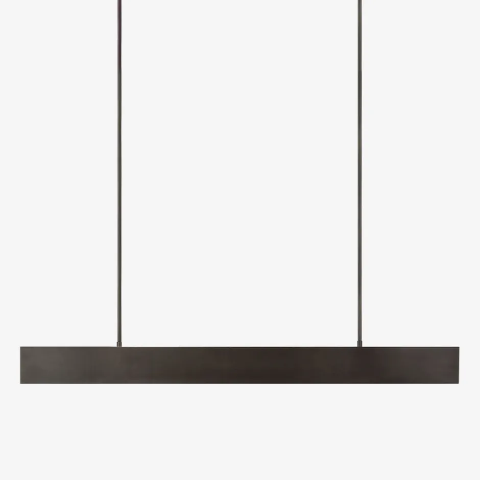 The Pench Medium Linear Chandelier utilizes the coolness of metal married with an LED light source to create a one-of-a-kind linear masterpiece. It balances this with the metal stems at the center of the pendant. Monolithic metal forms are illuminated artfully by an unseen light source within.