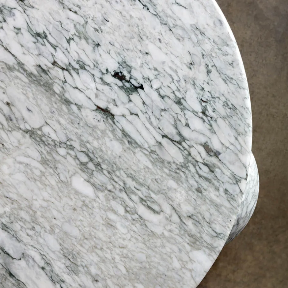 Hand carved from solid stone, the Morro Coffee Table exemplifies modernity through geometric simplicity and form. The sculptural 3-sphere base and substantial top are each composed of solid stone with a honed finish that enhances the richness of this beautiful natural material. Hand crafted in Los Angeles.