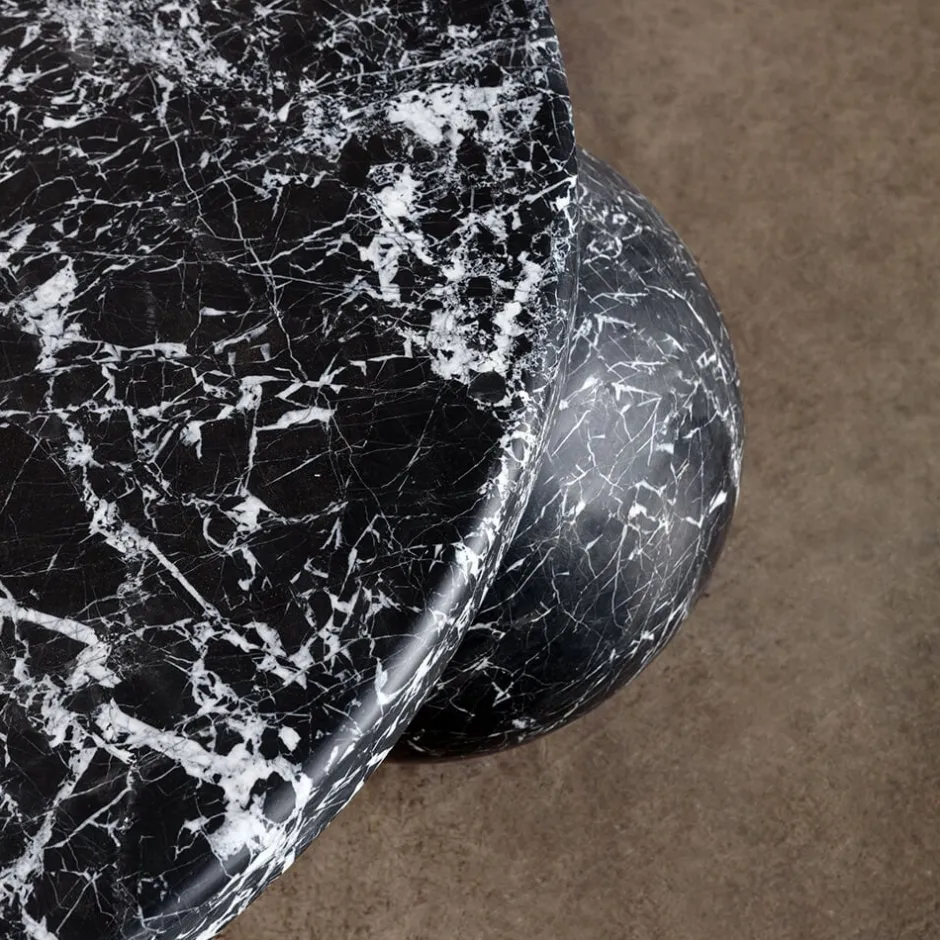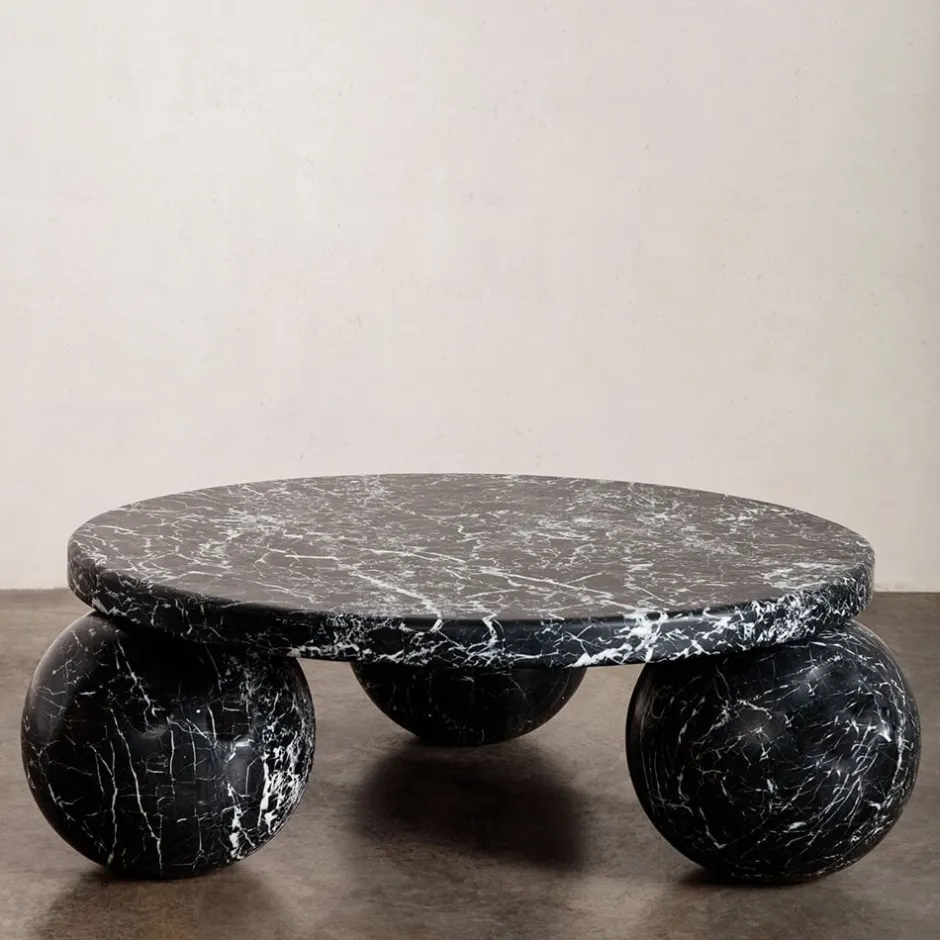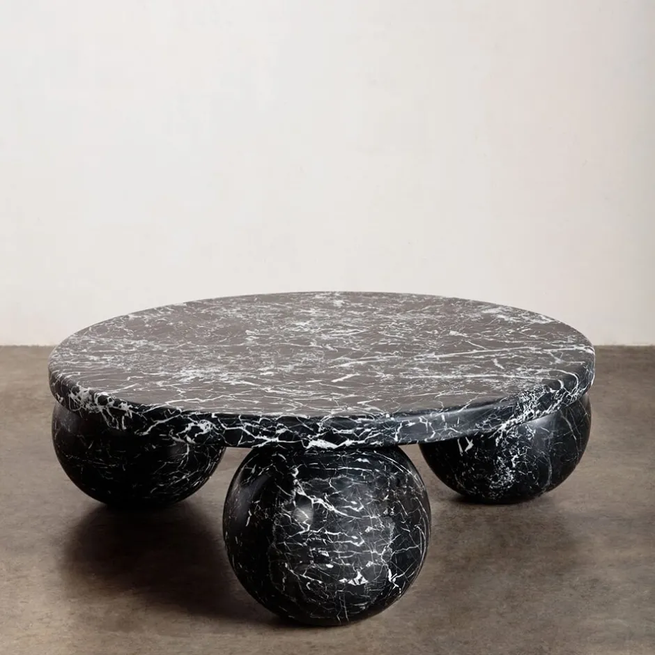 Hand carved from solid stone, the Morro Coffee Table exemplifies modernity through geometric simplicity and form. The sculptural 3-sphere base and substantial top are each composed of solid stone with a honed finish that enhances the richness of this beautiful natural material. Hand crafted in Los Angeles.