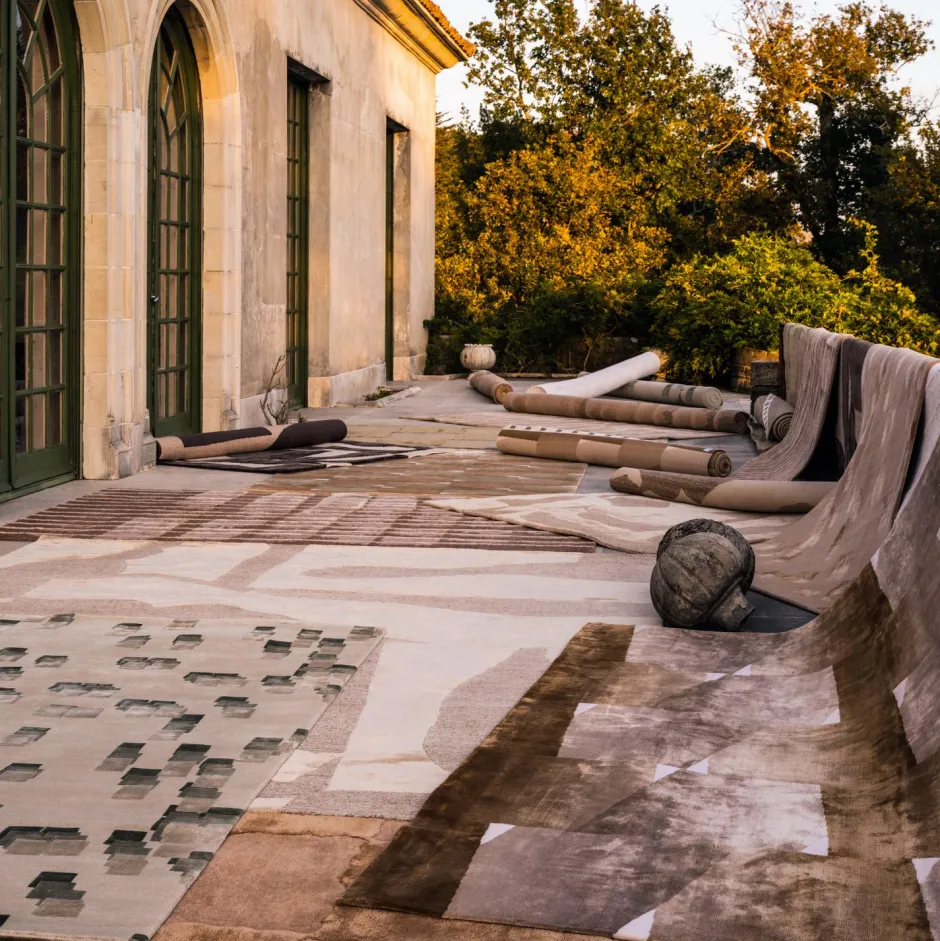 The latest rug collection, Crescendo, draws inspiration from music and explores the interplay between geometric forms and organic shapes, creating visual movement akin to musical rhythm. A diverse library of natural materials, including the finest wool, silk, nettle and linen have been hand knotted by artisanal weavers in Nepal, using a combination of traditional techniques that add a sculptural quality. Each design presents refined yet bold, merging raw materials and intricate artistry, creating pieces that are both visually striking and tactically engaging.