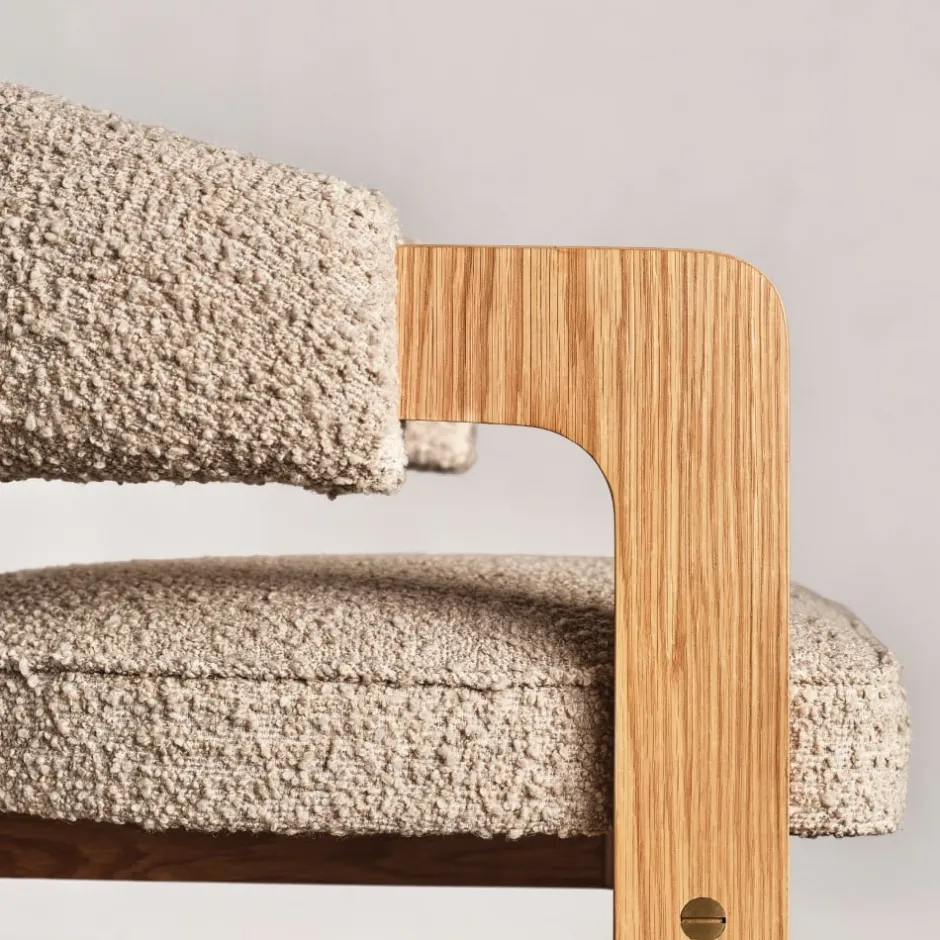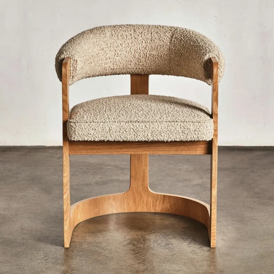 The Zuma Dining Chair combines clean, architectural lines with a modern sensibility, making it a timeless addition to any dining space. The sweeping curves of the bent wood frame are complemented by thoughtful brass detailing and comes in a selection of Ebonized, Bleached or Natural Oak finishes. The tightly upholstered back wraps neatly around the frame, while the boxed seat features a self-welt detail for a tailored finish. Hand crafted in Los Angeles.
