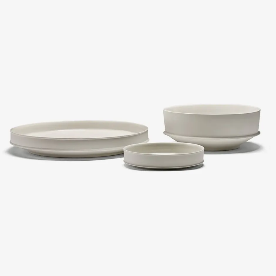 Channeling the essence of classic pottery heritage, the Dune Raised Bowl exudes an aura of timeless artistry. Its exquisite two-tone composition, blending the velvety allure of matte ceramics with the exquisite sheen of high gloss, enhances the sculptural crests and ridges that variegate the bowl. In its varied manifestations, a corrugated motif elegantly permeates the Dune ensemble, adopting a diverse range of captivating forms that invite the creation of eclectic and harmonious table arrangements.