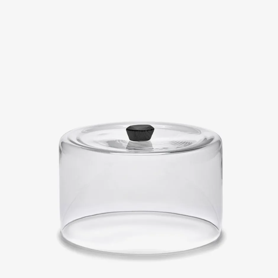 Exemplifying a captivating weightlessness and sculpted elegance, the Dune Glass Dome elevates the craft of presentation to a new level of grandeur. Designed to harmonize seamlessly with the natural variations of wood inherent in the Dune Cake Stand, this glass cloche emerges as functional art, with a gracefully curved handle enhancing its refined aesthetic allure.