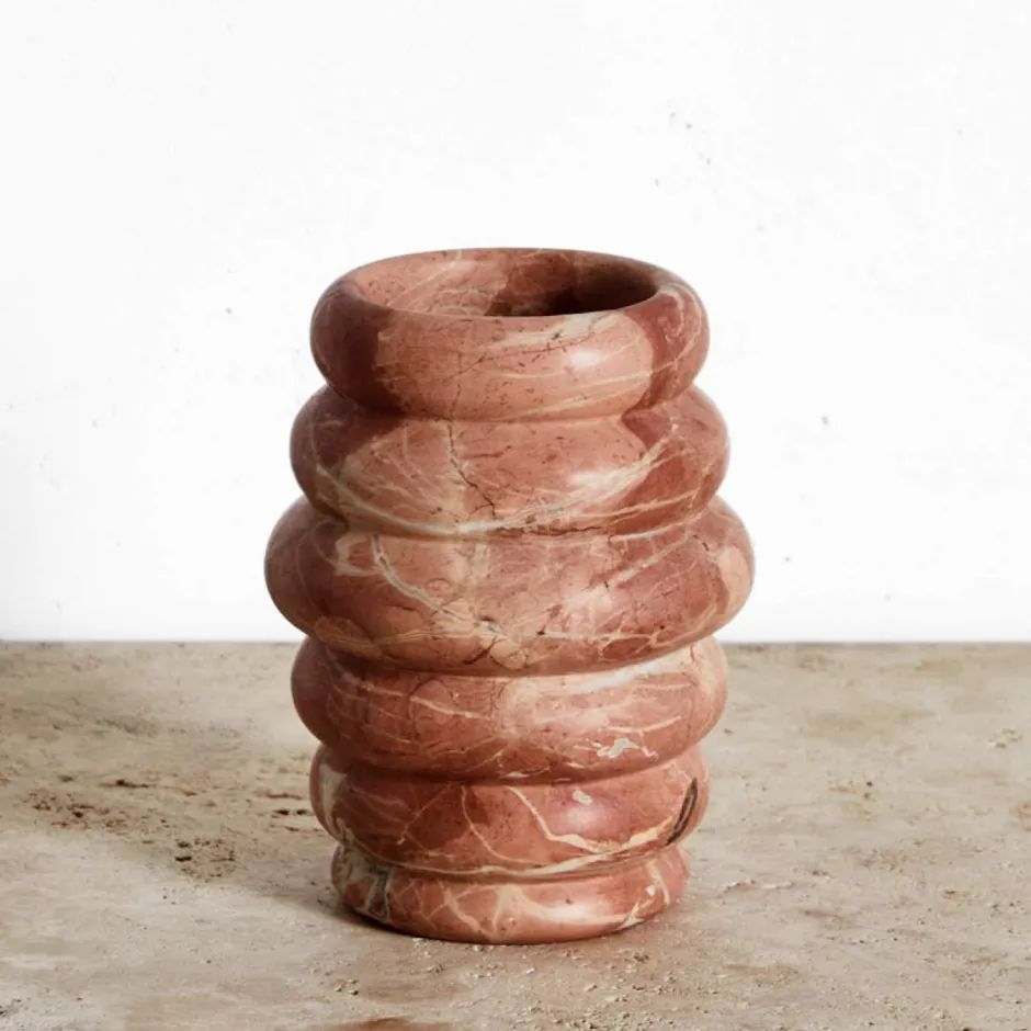 With its organic curves and lavish clean texture, this hand-sculpted vase is an elegant and sultry accent piece to hold fresh flowers or stand alone.