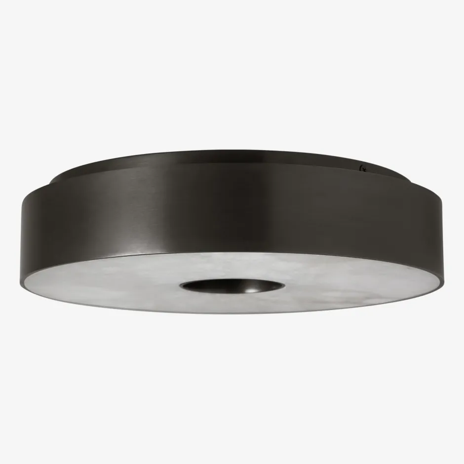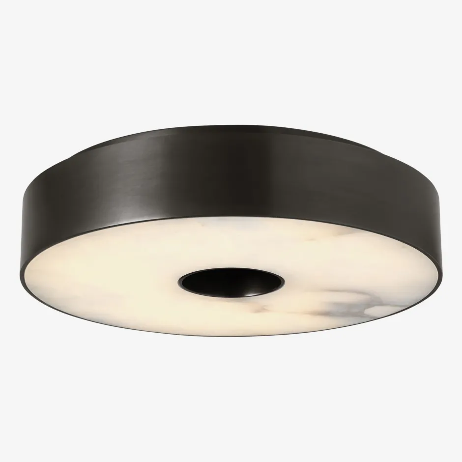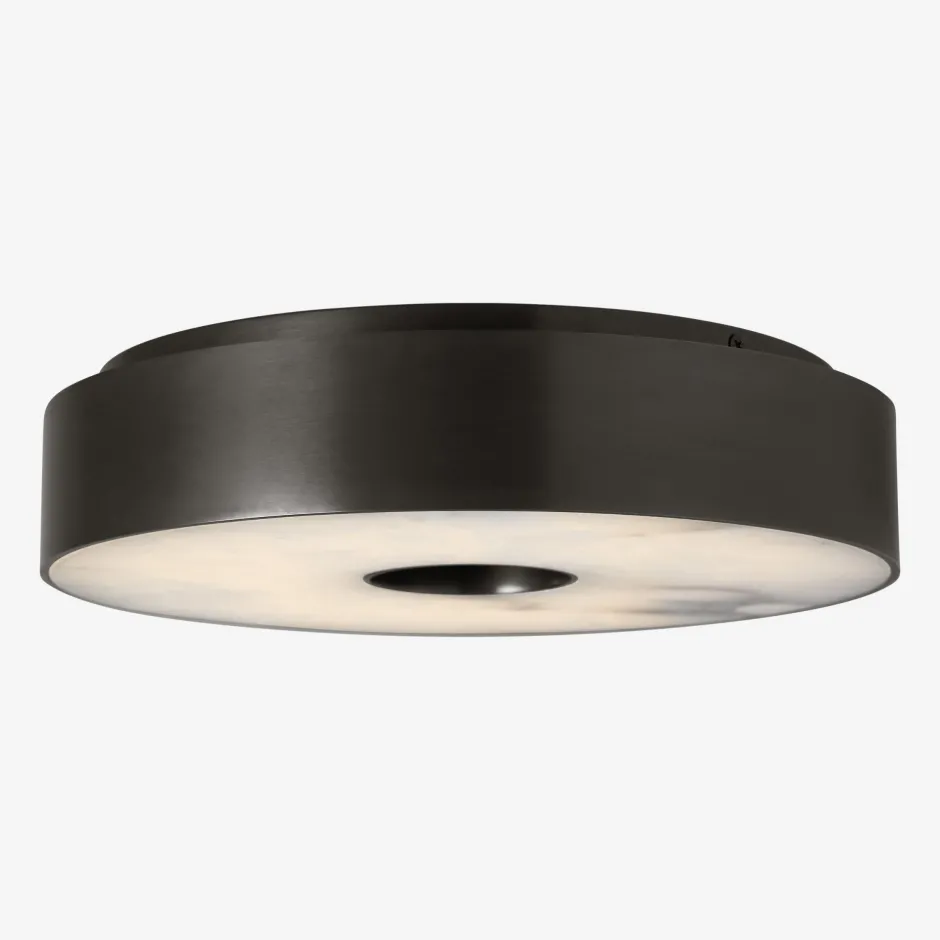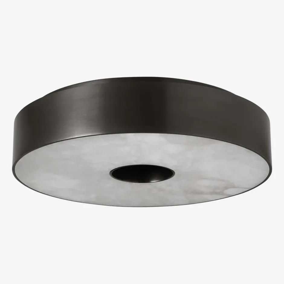 The Wyllis flush mount is structured and refined, this collection pairs solid brass hardware with natural alabaster diffusers. Both functional and decorative with a design that reflects modern art when off and functional lighting when turned on. Offered in modern finishes.