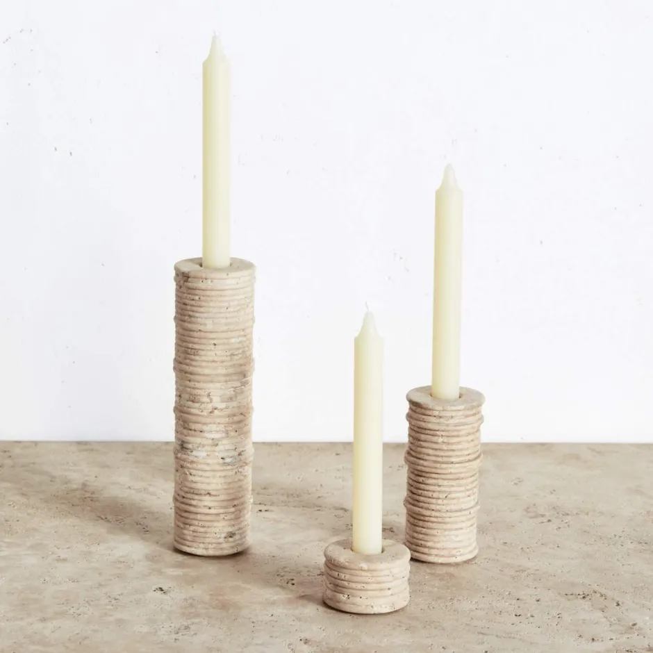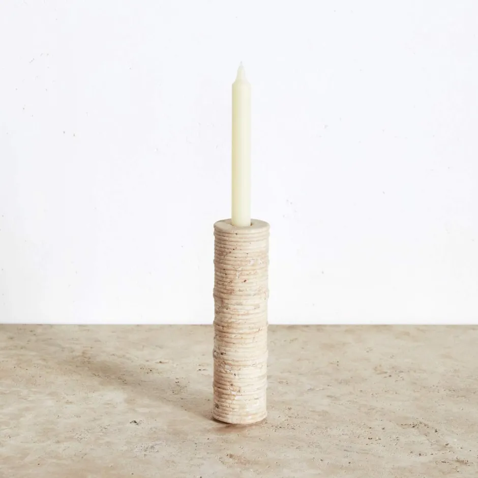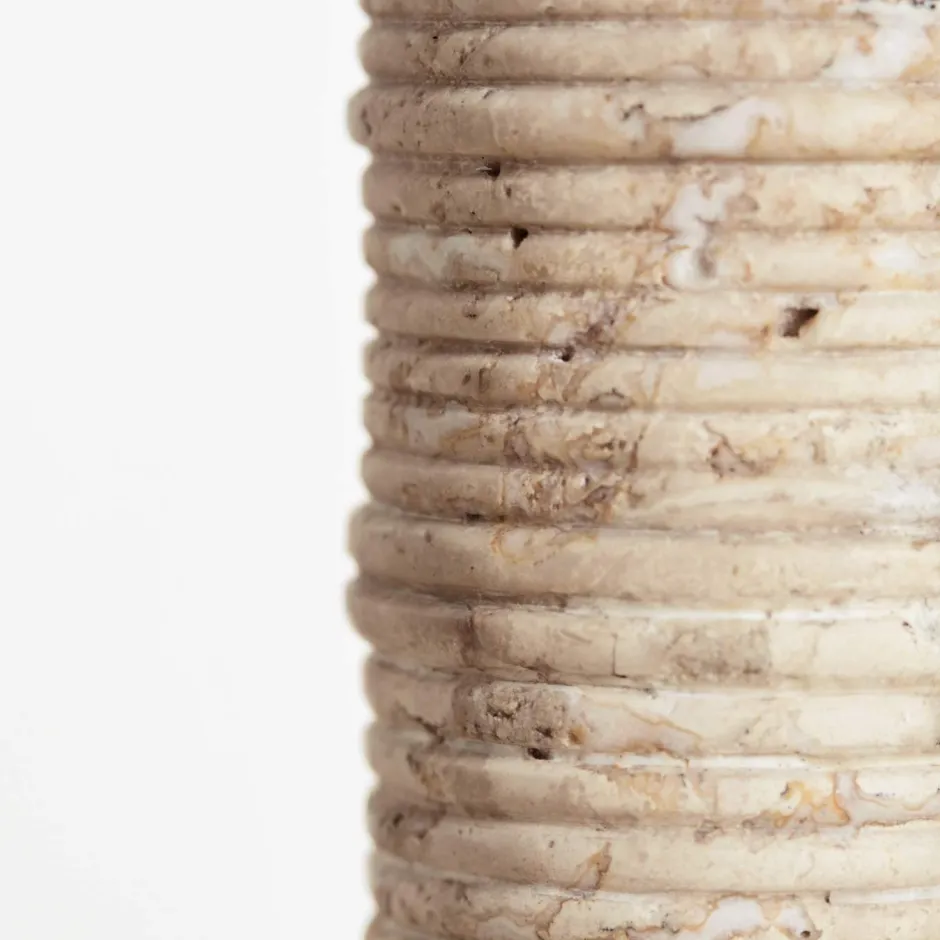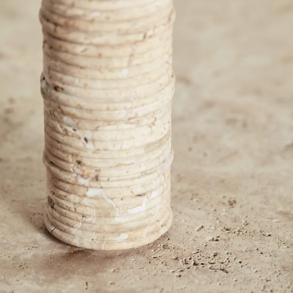 A reflection of nature’s influence, the Ribbed Medium Candle Holder features a monolithic aesthetic with intricate ribbed detailing crafted from natural travertine stone.