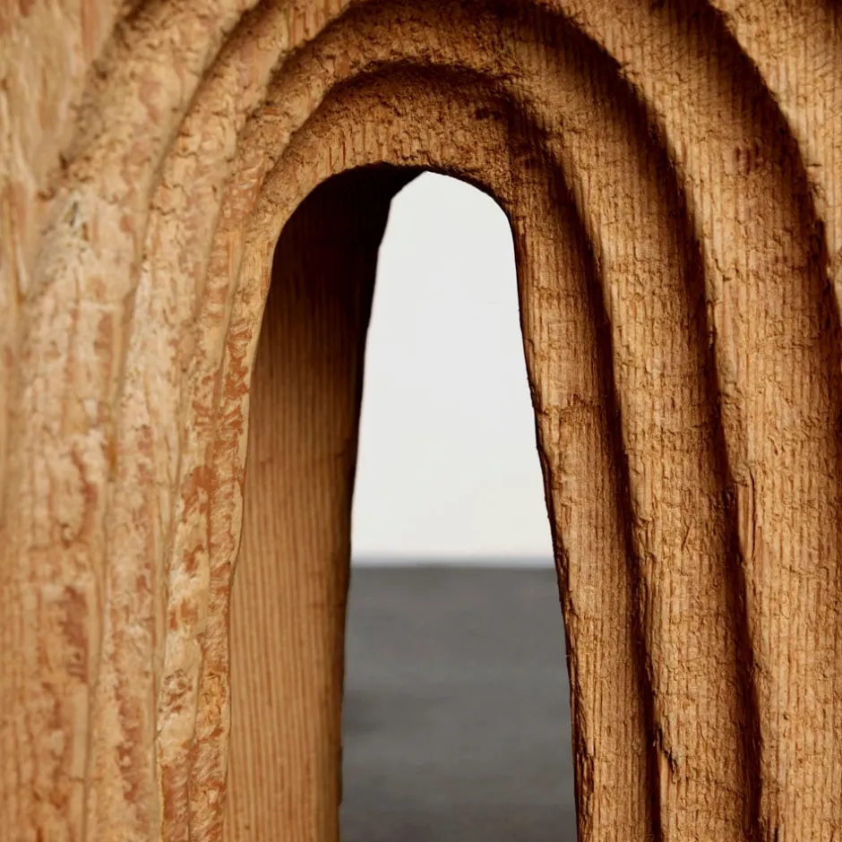 Building upon the foundation of the original collection, the Echo Side Table demonstrates the inherent beauty of organic materials and the mastery of the artisan with its undulating forms hand-carved from a single monolithic mass of wood. Beyond its visual allure, the Echo Side Table is a versatile statement piece in any bedroom or living room interior. Available in White Gesso, Ebonized Douglas Fir and Natural Douglas Fir. Hand crafted in our Los Angeles workshop.