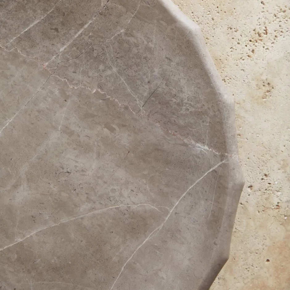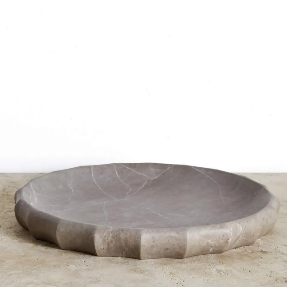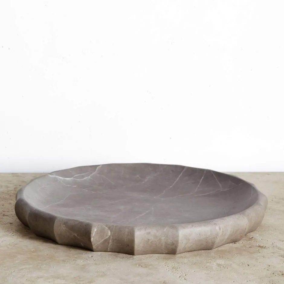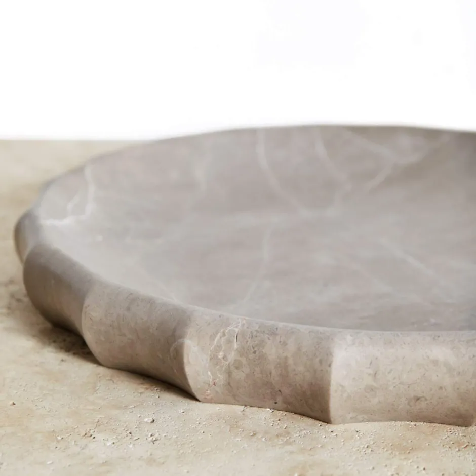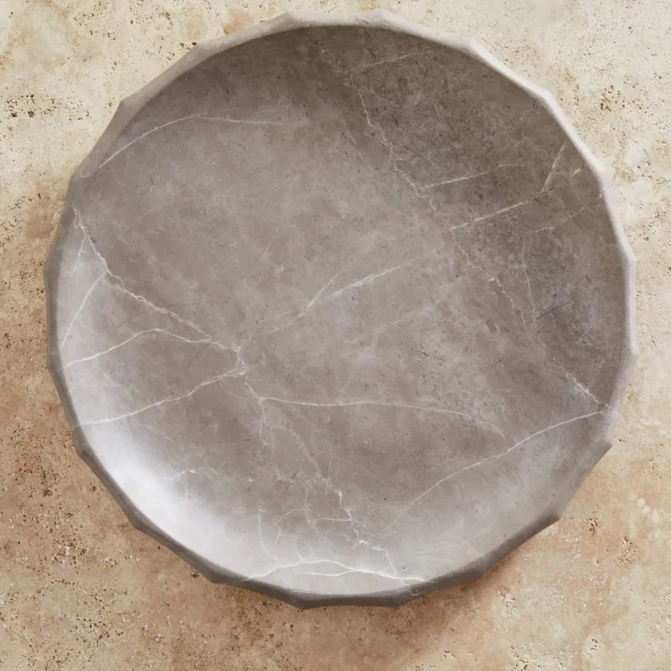 This sculptural bowl is carved from solid marble, the elegant fluting lending it a classical and timeless silhouette. Marble is a natural material so variations in markings and coloration will occur.