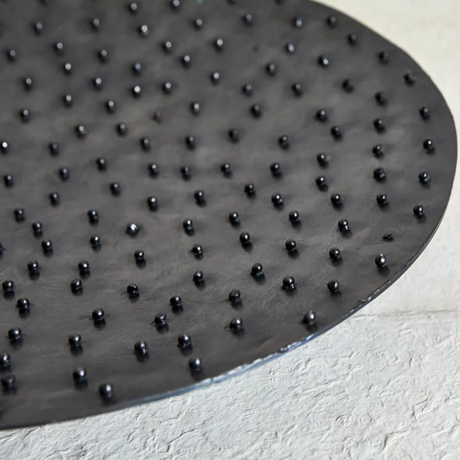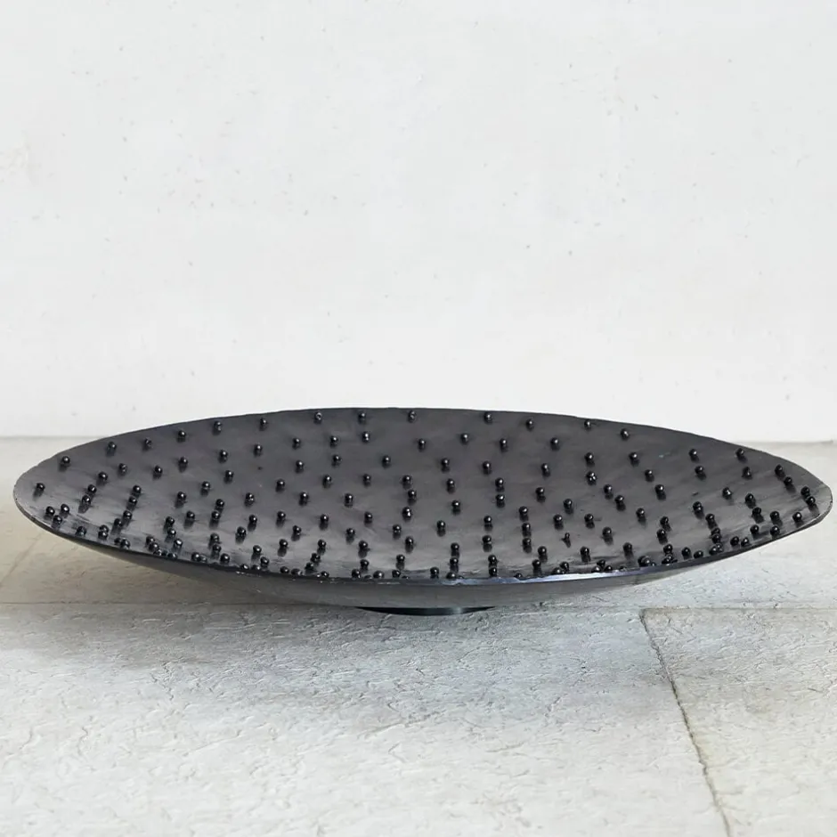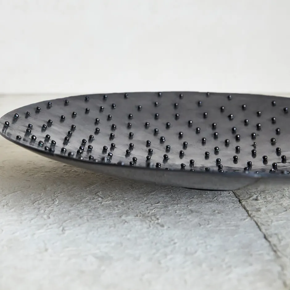 The Studded Platter is hand-sculpted by artisans in Los Angeles to feature a classic spotted texture that gives it antique appeal. Available in 2 different finishes: burnished brass and gunmetal.