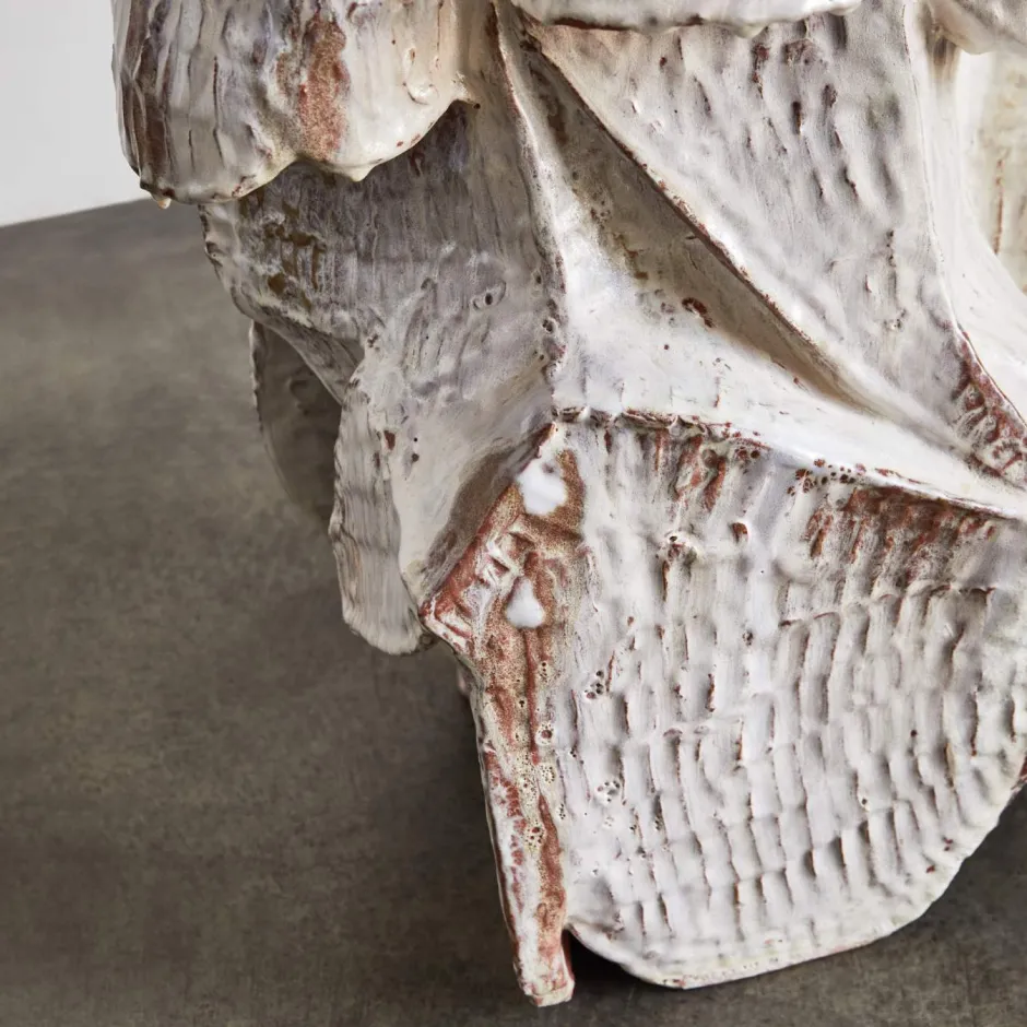 Combining traditional Korean onggi craftsmanship with special glazing techniques, YehRim Lee Terra Drinks Table is abstract sculpture at furniture scale with its slender silhouette layered in a harmonious blend of rich, deep colors. Due to the nature of terracotta stone and the intricate firing process, each piece is one-of-a-kind.