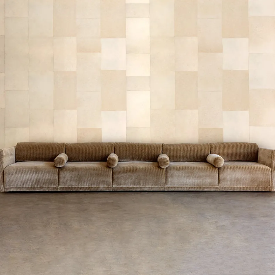 The Palladium Sofa offers a modern interpretation of a timeless form. Its generous frame features a tight seat with a waterfall edge, complemented by four bolster pillows for structure and comfort. Handcrafted in our Los Angeles workshop.
