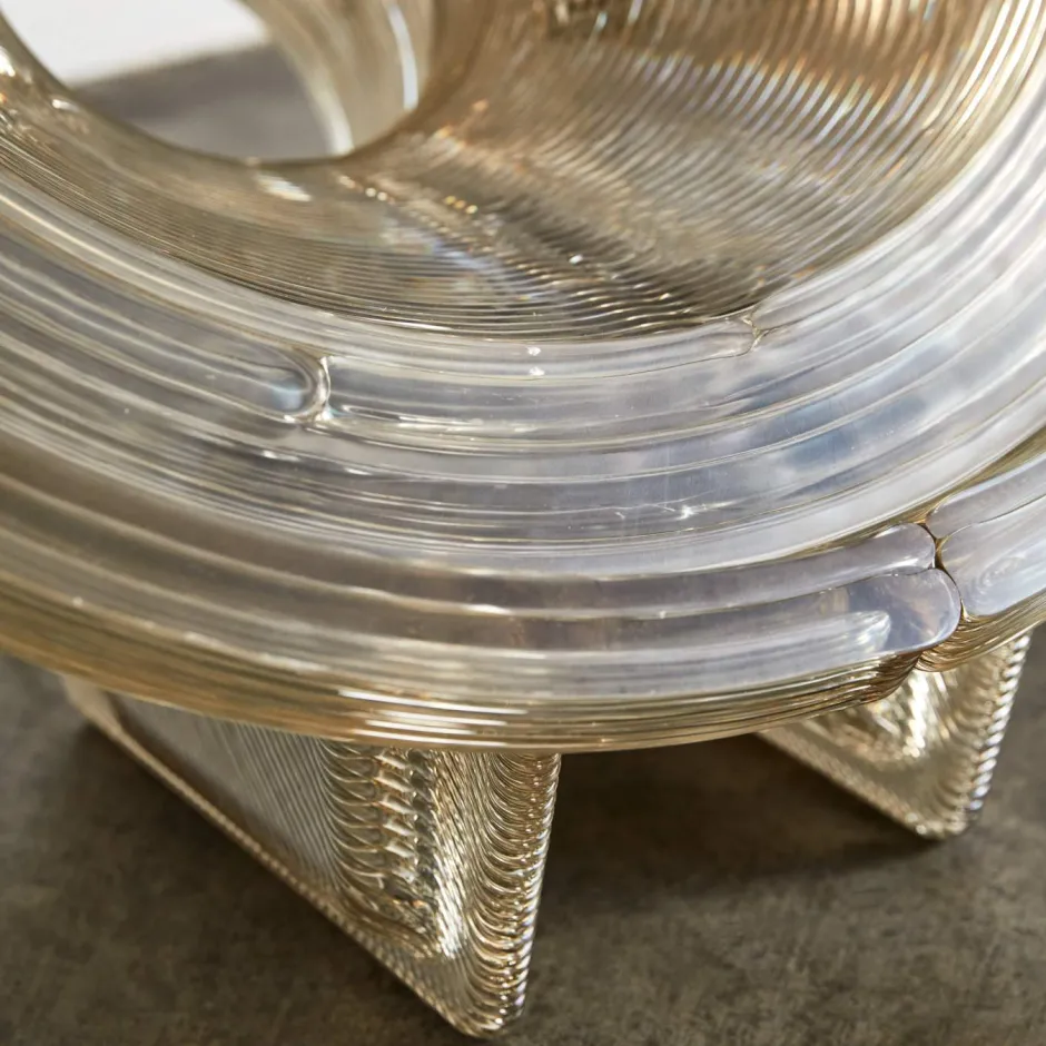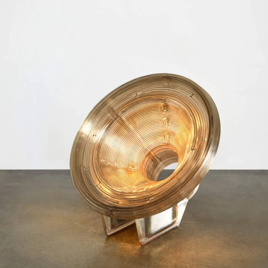 Elevating lighting to illuminated sculpture, the Satellite Lamp embodies a shell with its 3D layered structure enveloping three fluorescent lights while two tactile knobs allow manipulation of warmth and intensity for a delicate balance of light temperatures. Blending sculpture and functionality, this lighting fixture radiates a tranquil glow and makes a bold statement in any interior as a floor lamp or table lamp.