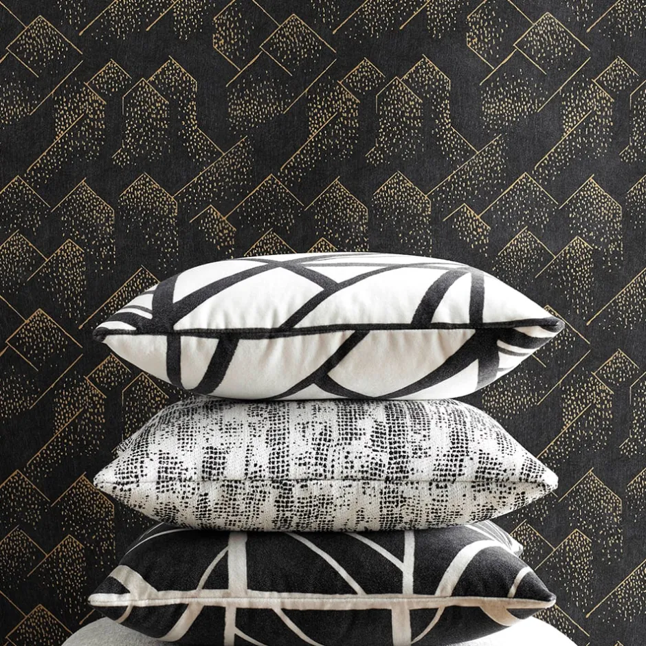 A larger scale version of the Brink wallpaper, this plaster print wallcovering embodies a textured background providing depth beyond the surface of this organic geometric design.