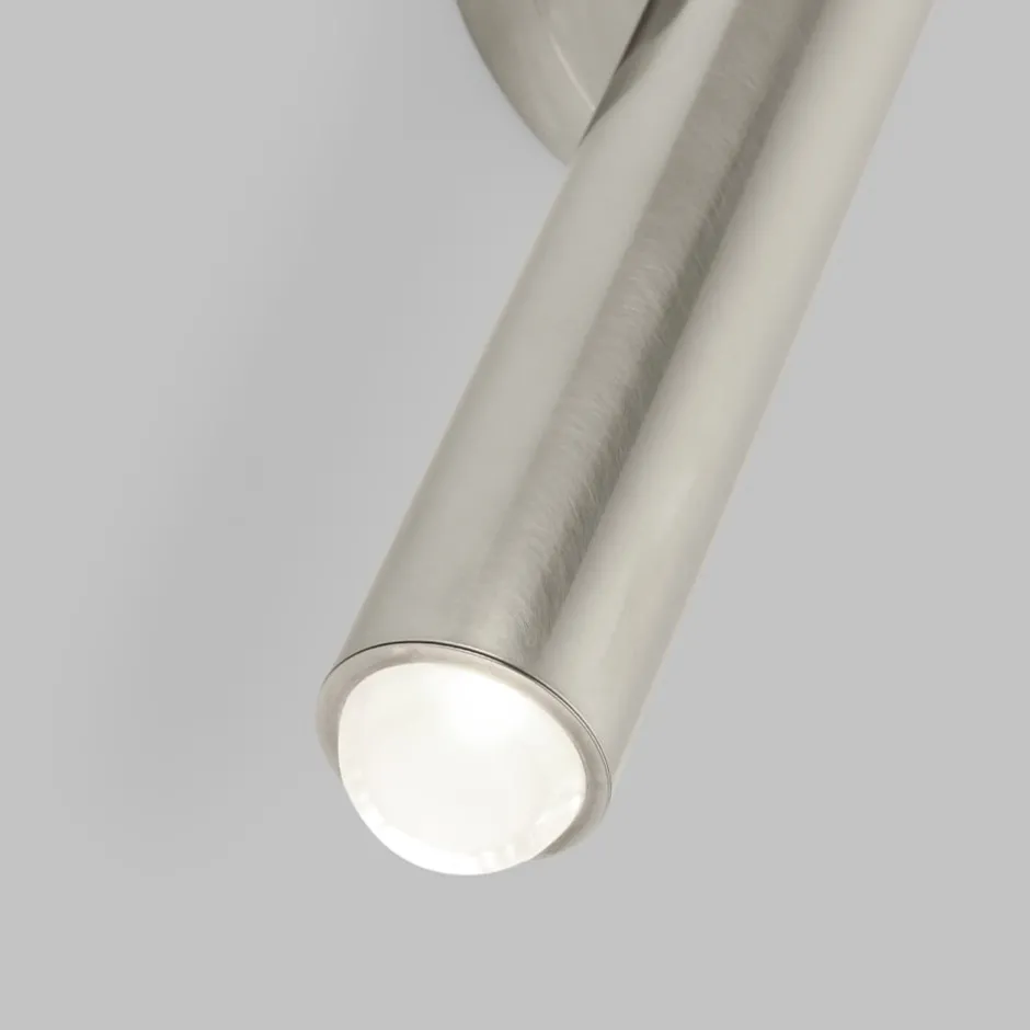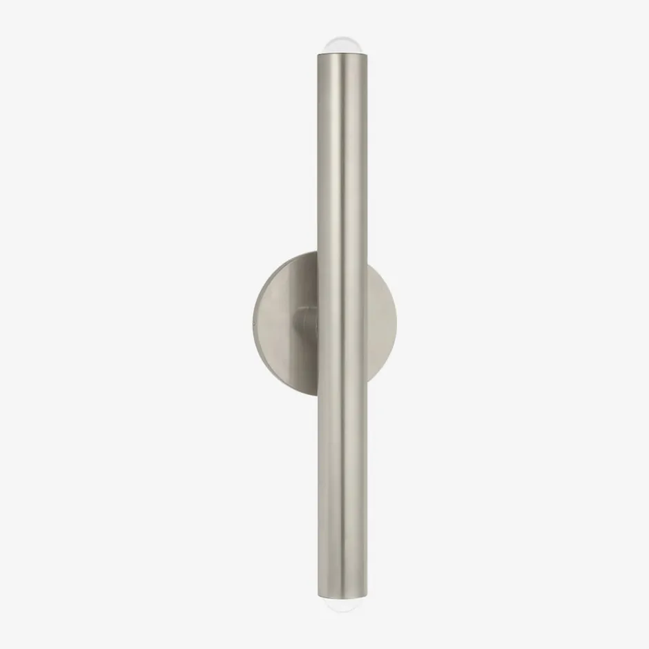 The Ebell Medium Sconce by Kelly Wearstler for Tech Lighting incorporates a multi-dimensional domed glass prism set into pure cylindrical metal body. The concentrated warm LED within the frosted glass interior emits a state-of-the-art expression of light in this illuminating departure from the expected.