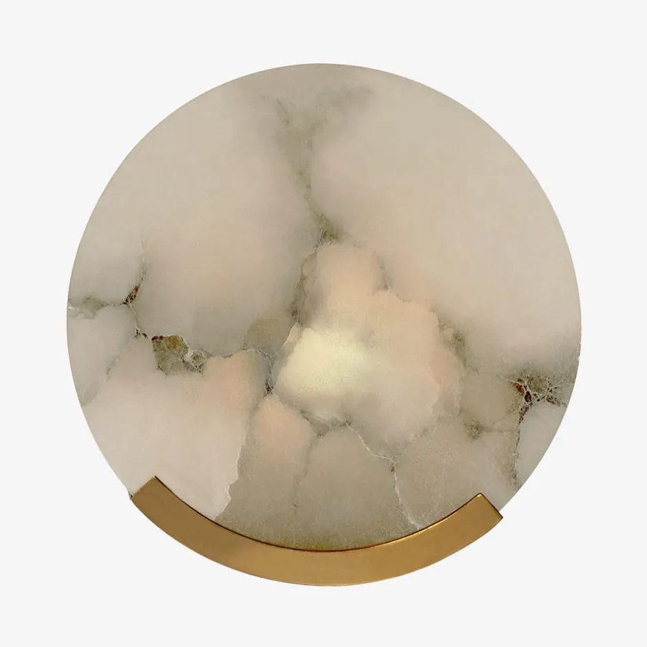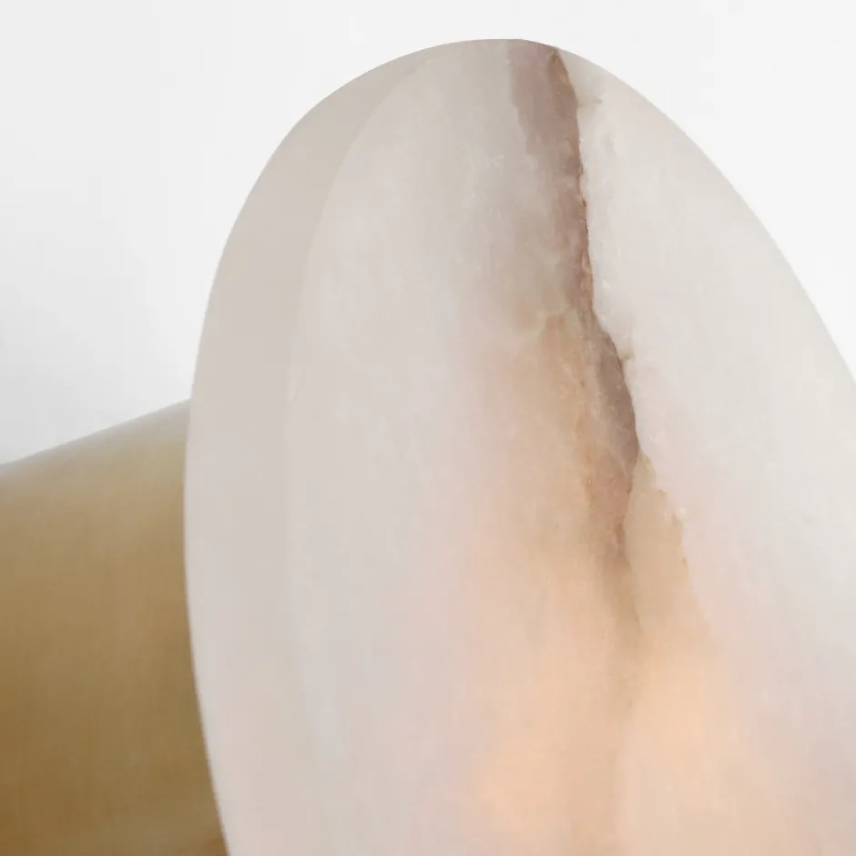 Effortlessly pairing natural alabaster and sleek metal detailing in a streamlined geometric form, the Melange Sconce exudes a modern refinement while emphasizing the beauty of natural stone. This sconce features hand-carved natural alabaster with either Antique Brass, Bronze or Polished Nickel detailing and is rated for damp locations.