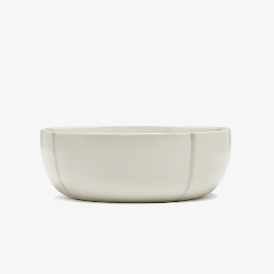 Blending futuristic 3D vector grids seamlessly with ancient glassware motifs, the Zuma 11.25″ Bowl is distinguished by a stripped down digital graphic motif to evoke an artisanal essence, resulting in an exquisite equilibrium between modern technology and traditional craftsmanship. The patterns exhibit diversity within the collection, designed purposefully for harmonious juxtaposition across an array of hues and forms, encouraging a playful interplay of aesthetics.