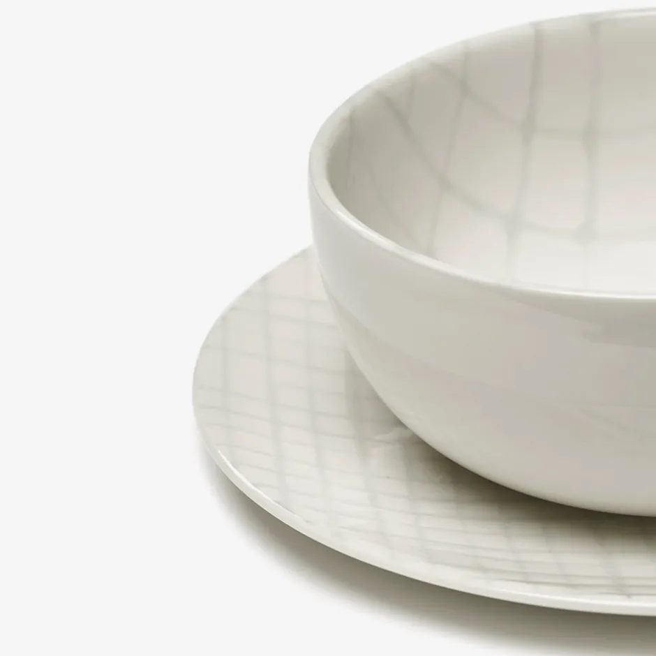 Blending futuristic 3D vector grids seamlessly with ancient glassware motifs, the Zuma 5″ Bowl is distinguished by a stripped down digital graphic motif to evoke an artisanal essence, resulting in an exquisite equilibrium between modern technology and traditional craftsmanship. The patterns exhibit diversity within the collection, designed purposefully for harmonious juxtaposition across an array of hues and forms, encouraging a playful interplay of aesthetics.