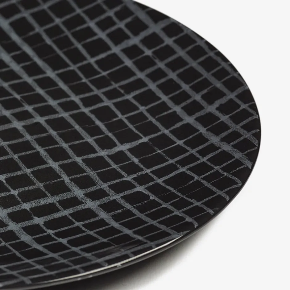 Blending futuristic 3D vector grids seamlessly with ancient glassware motifs, the Zuma 7″ Plate is distinguished by a stripped down digital graphic motif to evoke an artisanal essence, resulting in an exquisite equilibrium between modern technology and traditional craftsmanship. The patterns exhibit diversity within the collection, designed purposefully for harmonious juxtaposition across an array of hues and forms, encouraging a playful interplay of aesthetics.