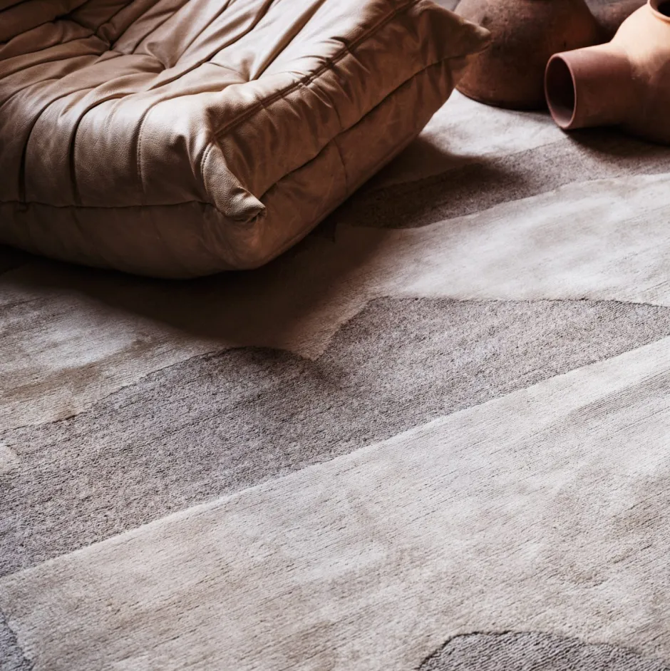 The latest rug collection, Crescendo, draws inspiration from music and explores the interplay between geometric forms and organic shapes, creating visual movement akin to musical rhythm. A diverse library of natural materials, including the finest wool, silk, nettle and linen have been hand knotted by artisanal weavers in Nepal, using a combination of traditional techniques that add a sculptural quality. Each design presents refined yet bold, merging raw materials and intricate artistry, creating pieces that are both visually striking and tactically engaging.