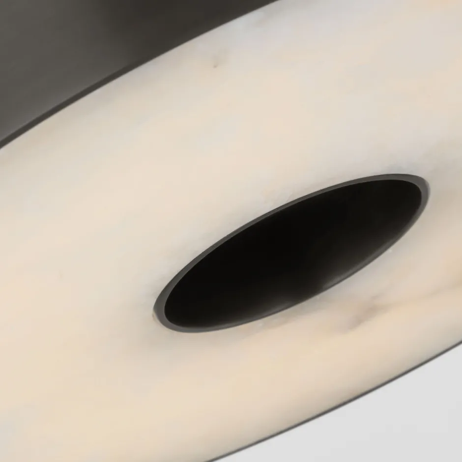 The Wyllis flush mount is structured and refined, this collection pairs solid brass hardware with natural alabaster diffusers. Both functional and decorative with a design that reflects modern art when off and functional lighting when turned on. Offered in modern finishes.