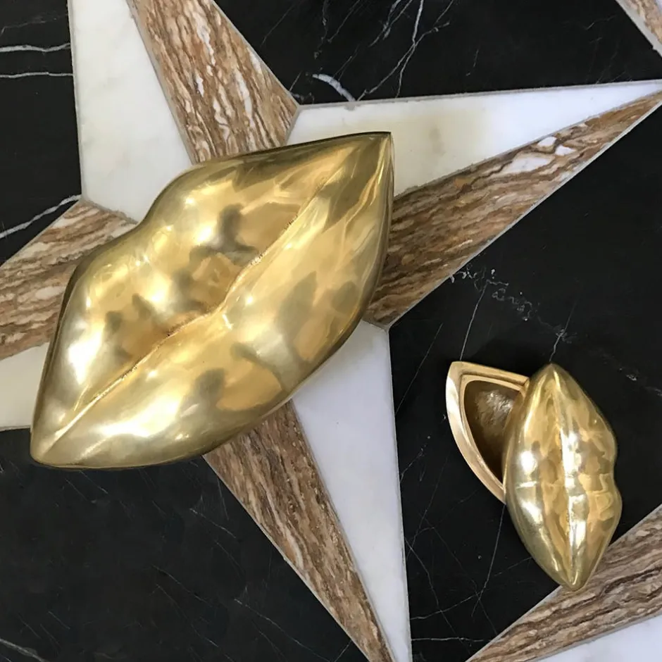The hand-cast natural brass lips box is made in Los Angeles, and is the perfect accessory for any vanity or dresser. Available in mini or large.