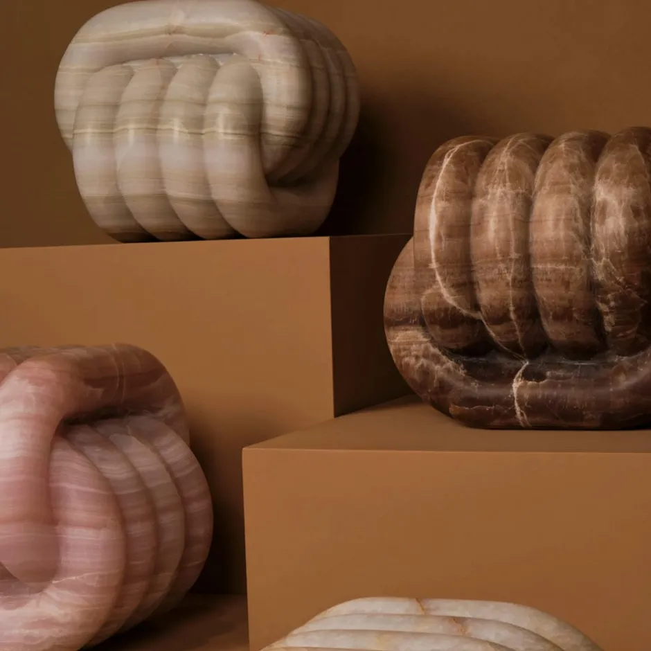 Embodying the undulating movements intrinsic to the traditional craft of weaving, NUDO End Table is a striking expression of marble stone with its softly rounded silhouette inspired by the simple beauty of interconnected yarns. A deep exploration of luxury material using traditional craftsmanship and technology, this piece makes a compelling design statement as standalone sculpture at furniture scale or with other pieces in the collection to create an intriguing dialogue.