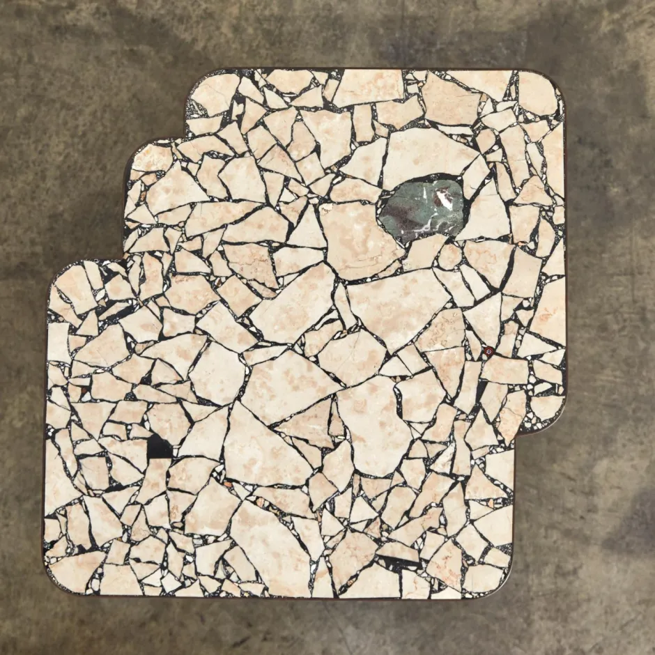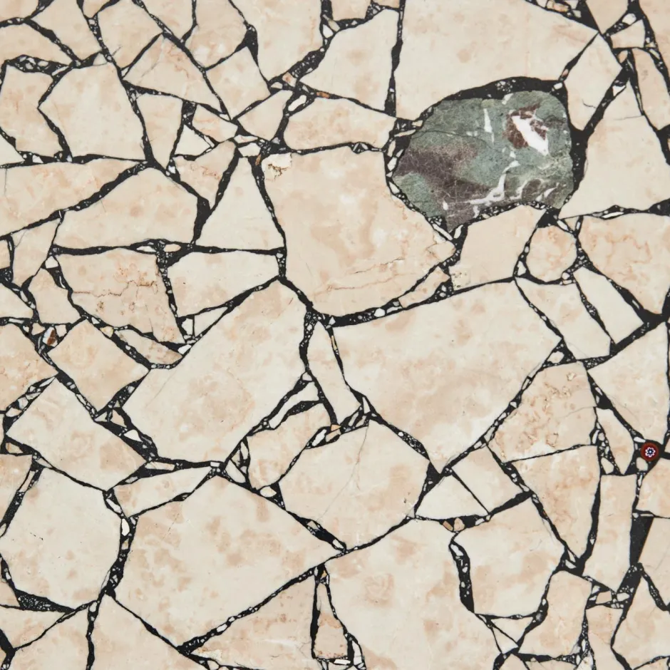 Exploring the tactile qualities of Terrazzo stone, Xenolith side table brings dimension and a sense of sophisticated luxury into any living room or bedroom interior with its sculptural quality and mosaic tabletop revealing the composition of natural stone. Due to the intrinsic nature of natural material, each design is one-of-a-kind and can be featured alone as furniture sculpture or part of the collection.
