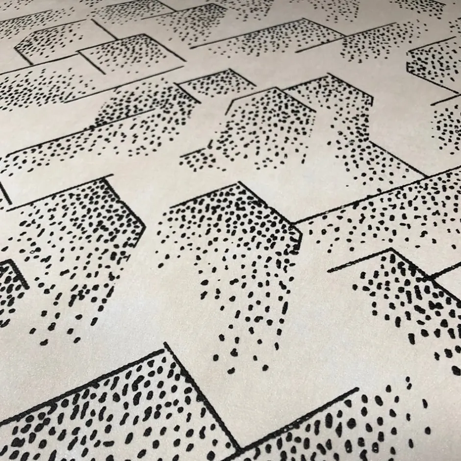 A larger scale version of the Brink wallpaper, this plaster print wallcovering embodies a textured background providing depth beyond the surface of this organic geometric design.