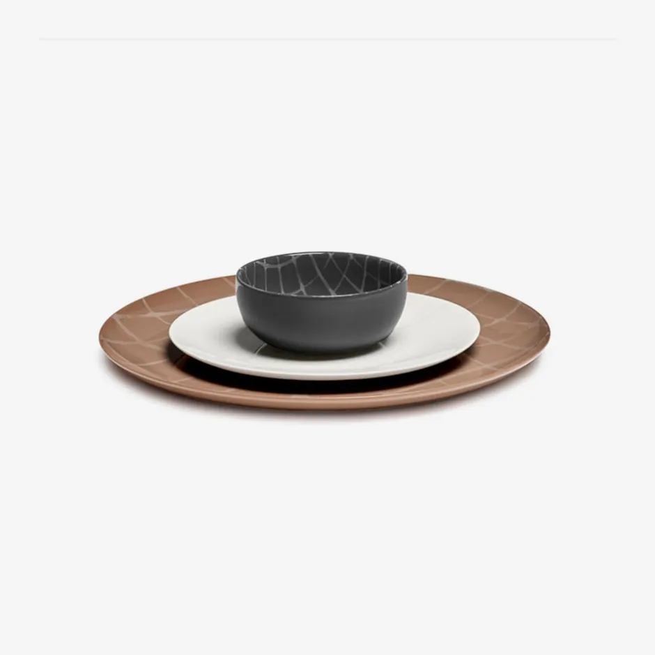 Blending futuristic 3D vector grids seamlessly with ancient glassware motifs, the Zuma 5″ Bowl is distinguished by a stripped down digital graphic motif to evoke an artisanal essence, resulting in an exquisite equilibrium between modern technology and traditional craftsmanship. The patterns exhibit diversity within the collection, designed purposefully for harmonious juxtaposition across an array of hues and forms, encouraging a playful interplay of aesthetics.
